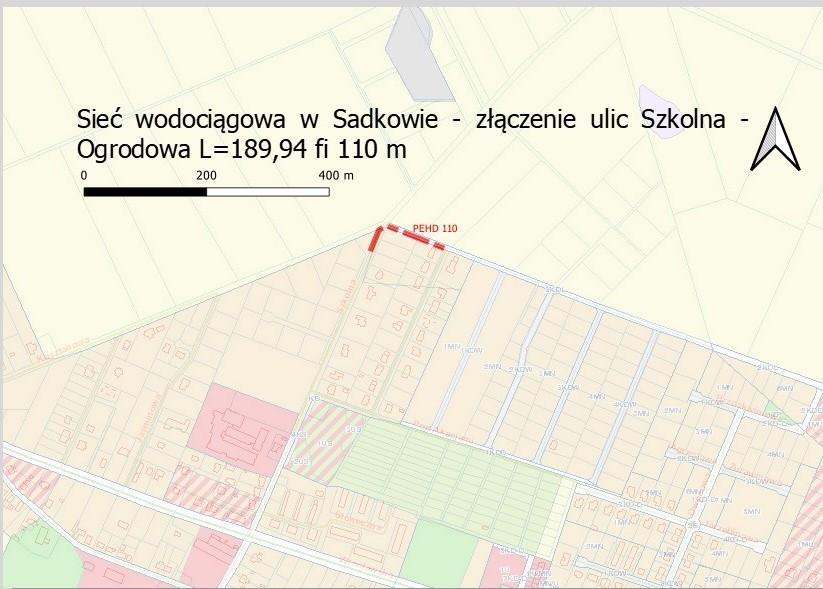 Sieć wodociągowa w Sadkowie - złączenie ulic Szkolna - Ogrodowa L=189,94 Ø110 m